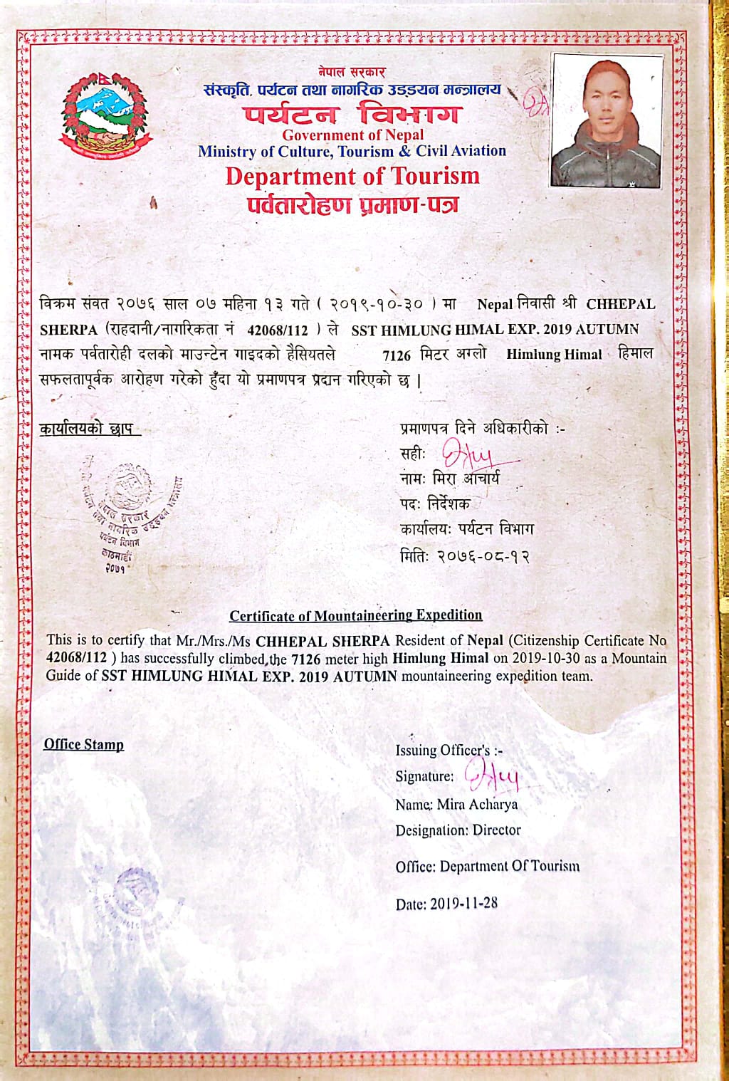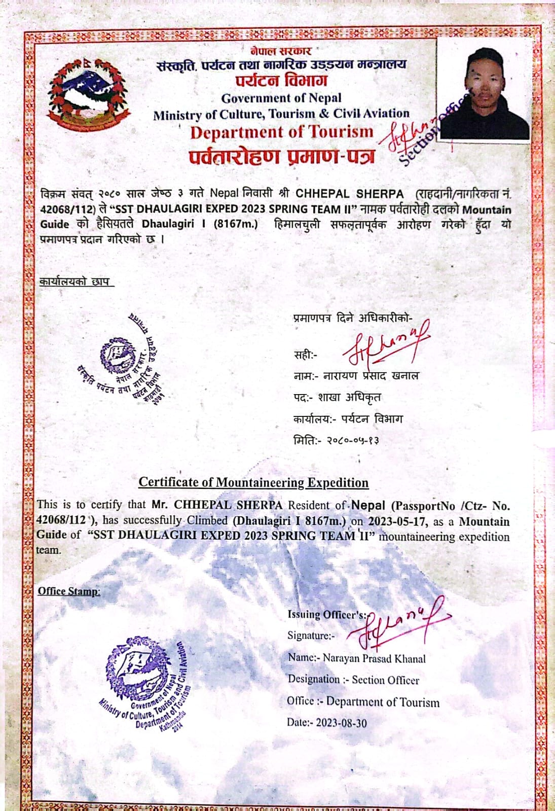 Throughout his career, Chhepal has participated in 38 expeditions above 8,000 meters across Nepal, Tibet, and Pakistan, serving as an expedition leader for major high-altitude climbs. His experience includes multiple winter expedition attempts on K2, Everest, and Annapurna I, showcasing his commitment to pushing the limits of extreme mountaineering.