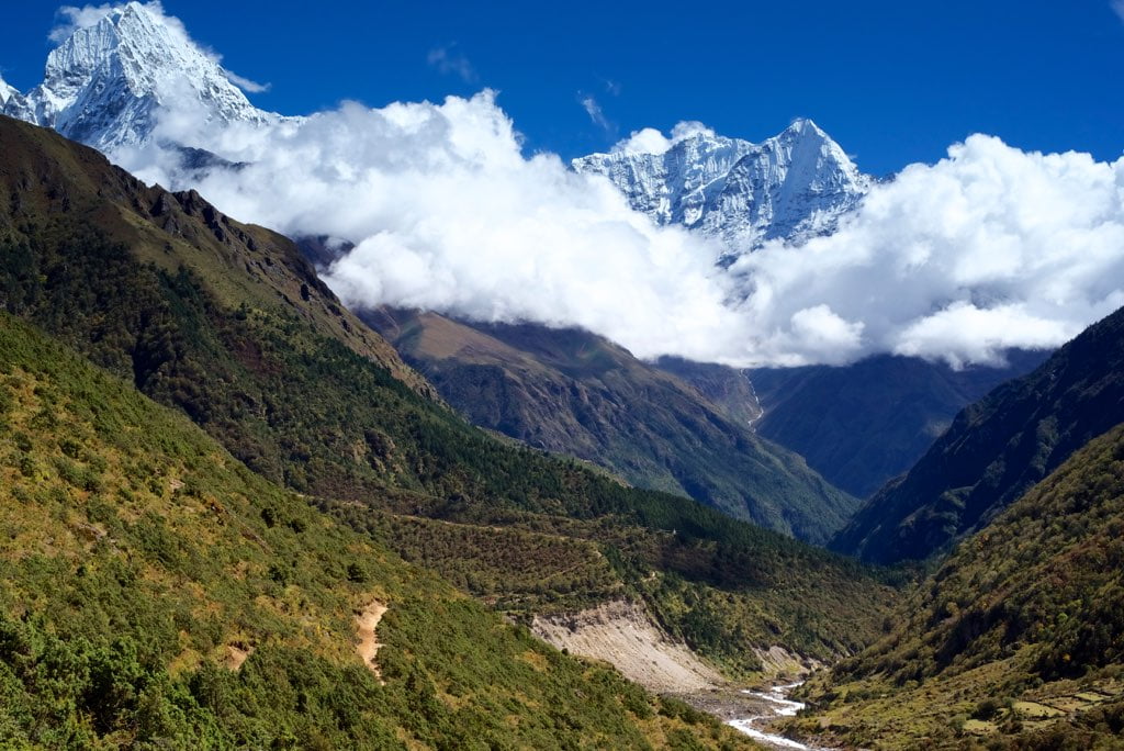 Trek through rhododendron forests and traditional Sherpa villages. Reach Khari or Tengboche and visit local monasteries with panoramic mountain views.